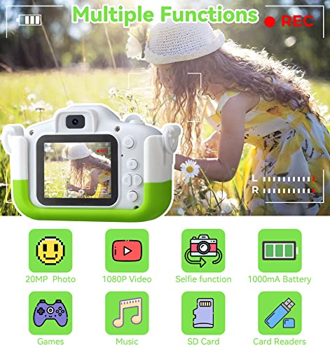 【2022 Neue Kinderkamera】Inklusive 32-GB-SD-Karte und Kartenleser für den Anschluss an einen Computer oder ein Telefon zum Exportieren von Fotos und Videos. Mit 20 Megapixel Front- und Rücklinsen und 1080P HD Video, Unterstützung für Selfies, mehrsprachige Einstellungen, leicht und einfach zu bedienen, niedliche Form, geeignet für Jungen und Mädchen im Alter von 3-12 Jahren, das beste Weihnachts- oder Geburtstagsgeschenk für Kinder!