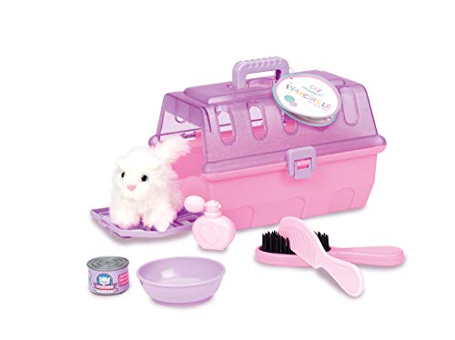 Enthält: (1) Transportbox, (1) Plüschkatze, (1) Dose Spielzeug Katzenfutter, (1) Napf, (1) Kamm, (1) Bürste, (1) Flasche Spielzeugparfüm