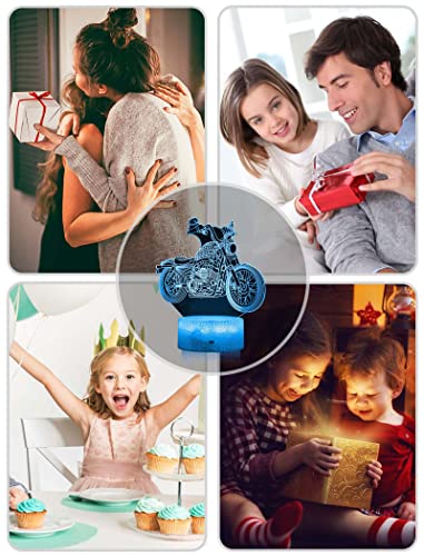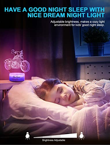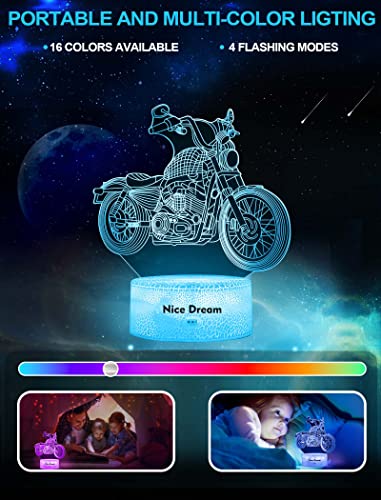 Nice Dream Motorrad Nachtlicht für Kinder, 3D Illusion Lampe Kinderzimmer LED Licht, Fernbedienung 16 Farbwechsel Dimmbar, Weihnachtsgeschenke für Mädchen Junge Wohnzimmer Schlafzimmer Dekor